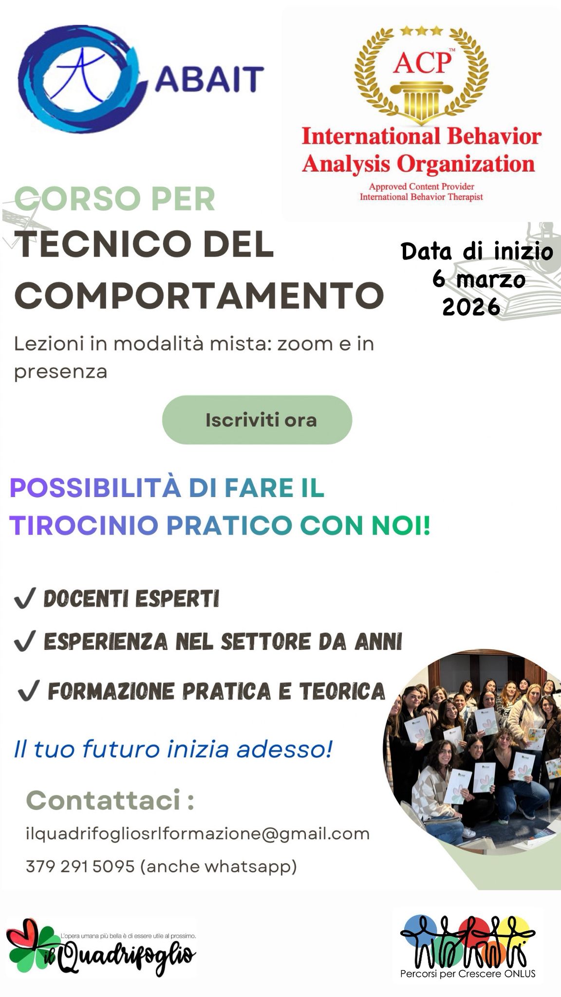 Dopo il grande successo dell’ultima edizione, conclusa con partecipanti entusiasti e feedback estremamente positivi, riparte il nostro corso per Tecnici del Comportamento, dal 6 marzo 2026!